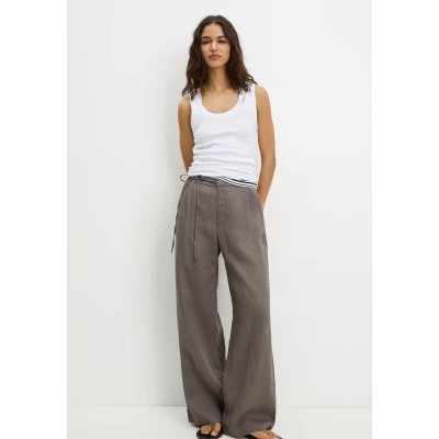 LINEN BLEND - Trousers - black